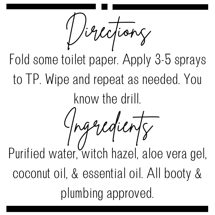 Categories: All Bundles 2oz Bottles 4oz Bottles All | Bundles | 2oz Bottles | 4oz Bottles | Travel Bottle Bundle $25.00 Owner's Faves Bundle $45.00 The Velvet Collection $45.00 Unscented Booty Spray - 2oz Bottle $7.00 Tea Tree Booty Spray - 2oz Bottle $7.00 Lavender Booty Spray - 2oz Bottle $7.00 Peppermint Booty Spray - 4oz Bottle $12.00 Peppermint Booty Spray - 2oz Bottle $7.00 Unscented Booty Spray - 4oz Bottle $12.00 Tea Tree Booty Spray - 4oz Bottle $12.00 Lavender Booty Spray - 4oz Bottle $12.00